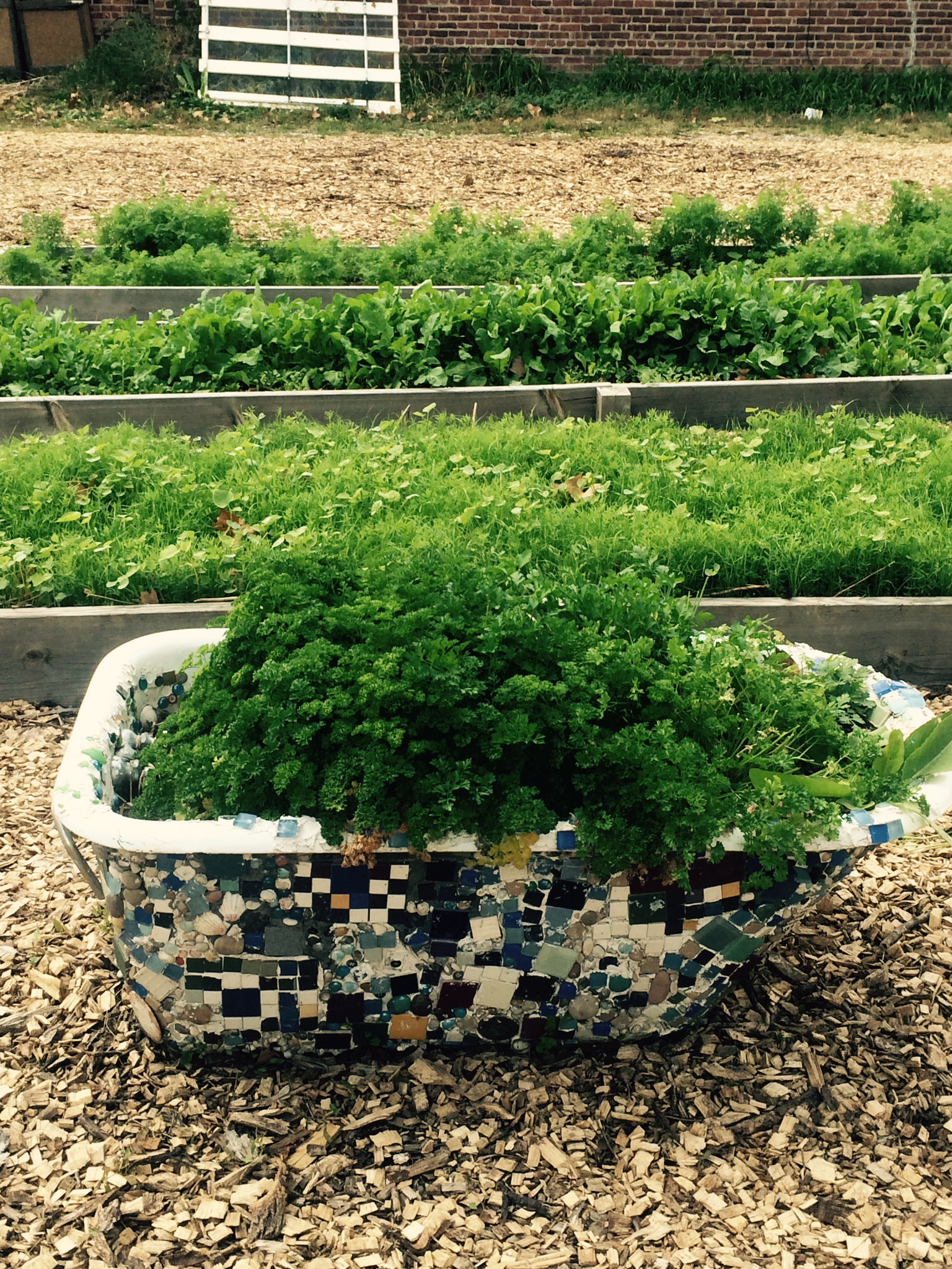 Do you plant your herbs in a mosaic bathtub? Creativity and veggie love!